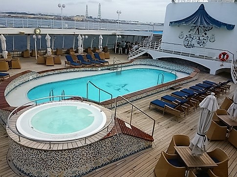 ![]() 避難訓練後に船内散策のツアーに途中まで参加 パドルテニスも体験 |