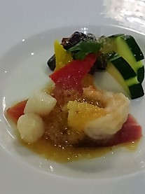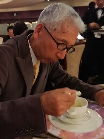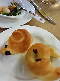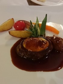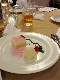 ![]() 5デッキ・ダイニングルーム Pm5:30〜7:00 夕食:フランス料理 口に合ったものだけ少しずつ食べる(この後に他のレストランに移動) |