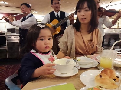 ![]() 2歳までは無料でしたが、料理は一人前出てきます。 |