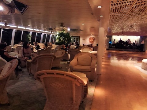 ![]() スケジュールを確認しながら11デッキに移動・・・生バンドを聞きながら食後のコーヒー&軽食? |