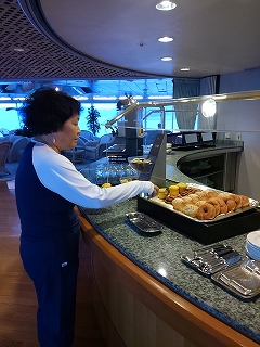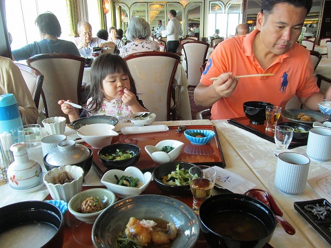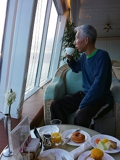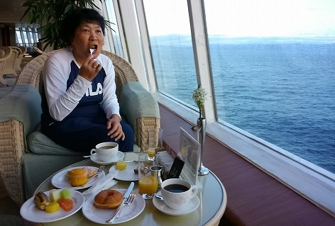 ![]() 7:40 5デッキのダイニングルームで和食 *** 口に合うものだけを食べて11デッキに移動 |