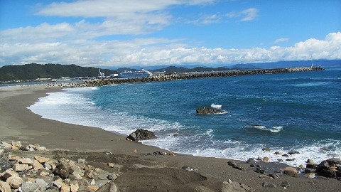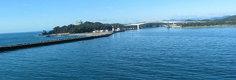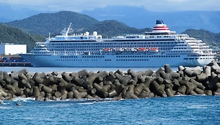 ![]() 桂浜からも油津港に停泊している飛鳥Uが見える! |