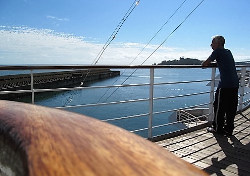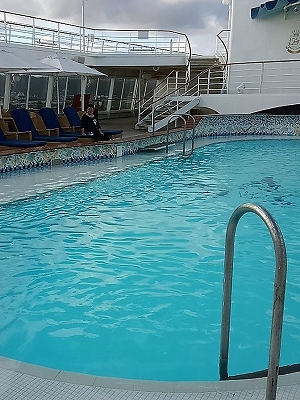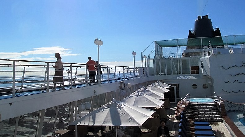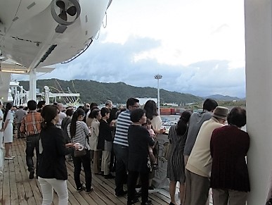 ![]() 食後に甲板を5周2km20分程ウォーキング Pm1:00〜4:45出港セレモニーまで気ままに |