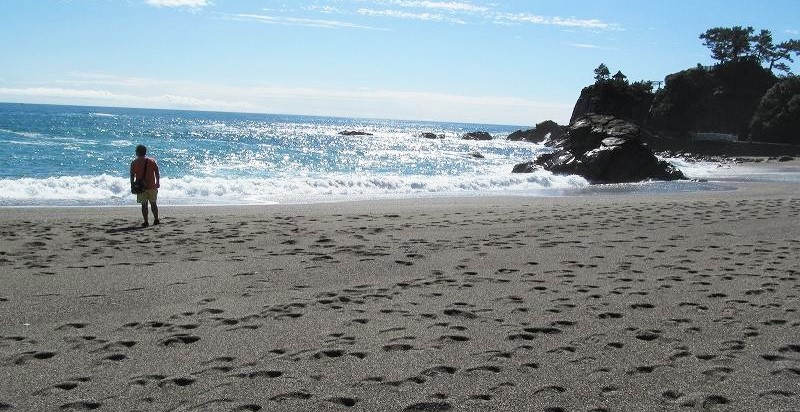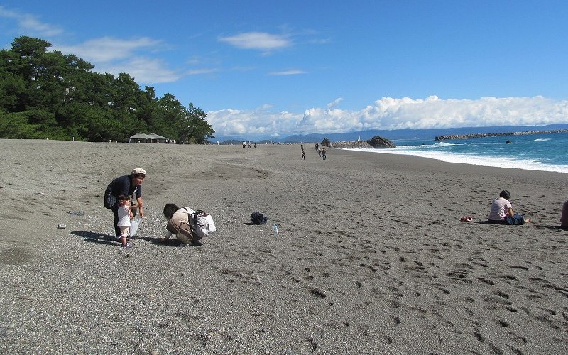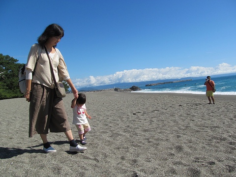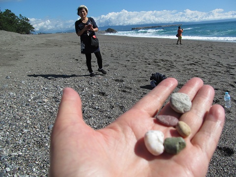 ![]() 砂浜に足を取られながら歩き、小石の浜で五色の石を探す! |