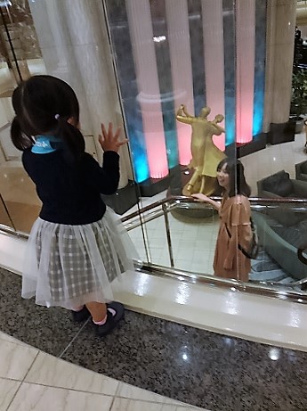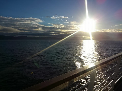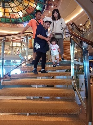 食後は11デッキのパームコートでティータイム・・・落ち着いたところで、展望風呂で癒しタイム! 部屋に戻ったら今夜も1時間15分のダンスタイムが孫と始まった(息子夫婦は風呂、嫁は疲れて途中からベット) Pm9:30やれやれ! |