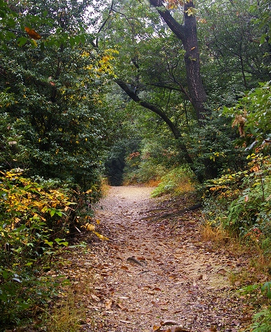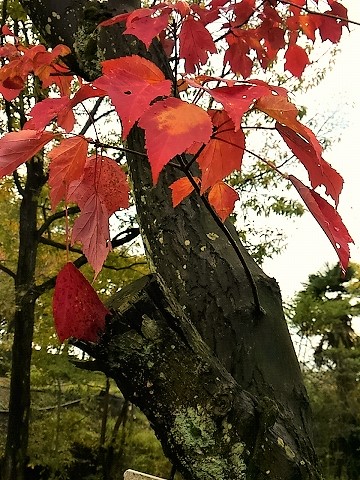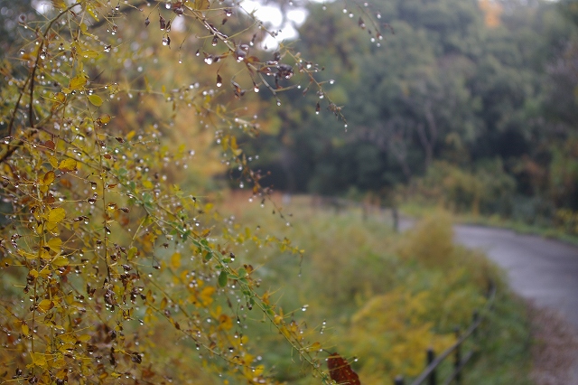 ![]() 雨上がりのコースはところどころぬかるんでいて、目線は足元の落ち葉鑑賞が続いた。 |