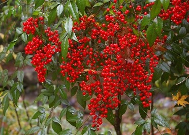 ![]() 正歴寺の境内には、真っ赤な南天の実が雨に光る! |