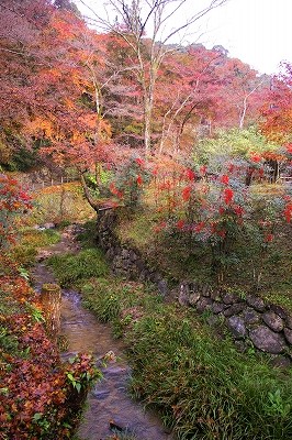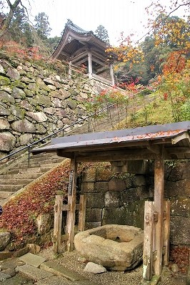 ![]() 菩提仙川の渓流に沿う山道には苔むした石垣が続き、かつての豪壮な寺坊がしのばれます。 石段は観世音菩薩の誓願の数にちなんだ33段と、阿弥陀如来の誓願の数にちなんだ48段、合計81段あり。 |