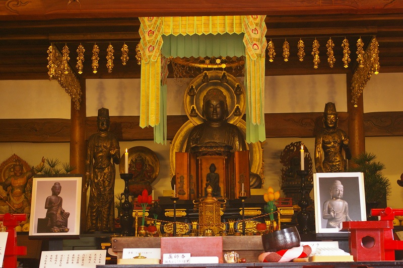 ![]() 本尊薬師如来倚像(中央に御開帳)白鳳時代の作 |