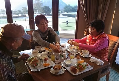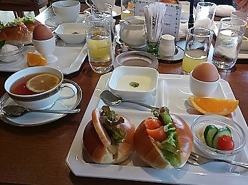 ![]() さわやかな朝を迎え、ヘルシーな朝食で今日は帰るだけです。 |