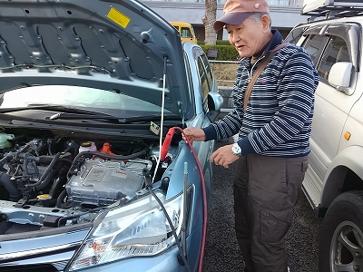 ![]() 何度開錠し様としても開かない??? 昨夜!ライトの消し忘れ!!! JAFでなくホテルが対応してくれ助かりました。 充電のマニュアル本を見て、ハイブリット車は5分の充電を続ける。 Takadonoさんにぐらつくケーブルを持って頂く事5分!ありがとうございました。 |