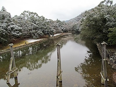 ![]() 雪になった伊勢神宮・宇治橋と五十鈴川 |