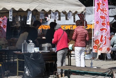 ![]() 梅祭り開催期間中はお粥とおでん,ポン菓子実演販売・たこ焼きと鯛焼きの露店が出ていました。 |