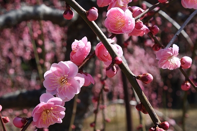 ![]() 鈴鹿市『菅原神社』の境内や鳥居横に約350本の枝垂れ梅が咲いています |