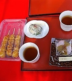 ![]() 金券2枚を使い>団子、草餅と桜餅で一服 |