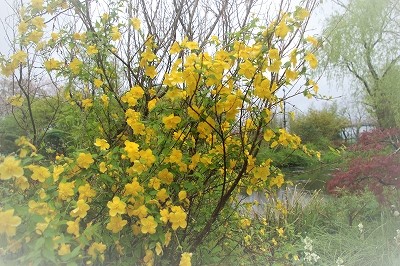 ![]() 山吹は満開で藤の花は咲き始めたところです |