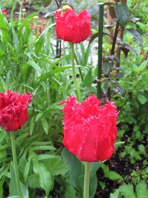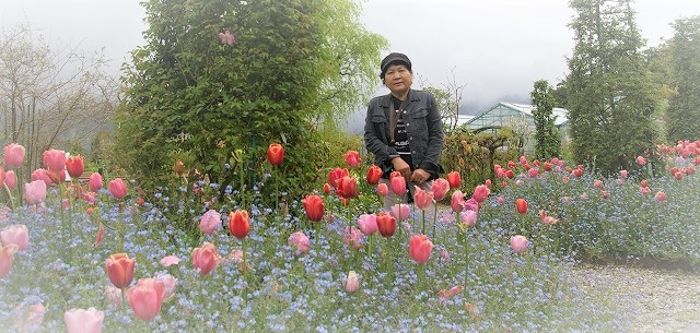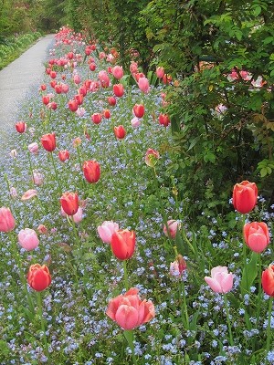 ![]() チューリップと忘れな草の混植 |