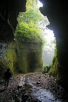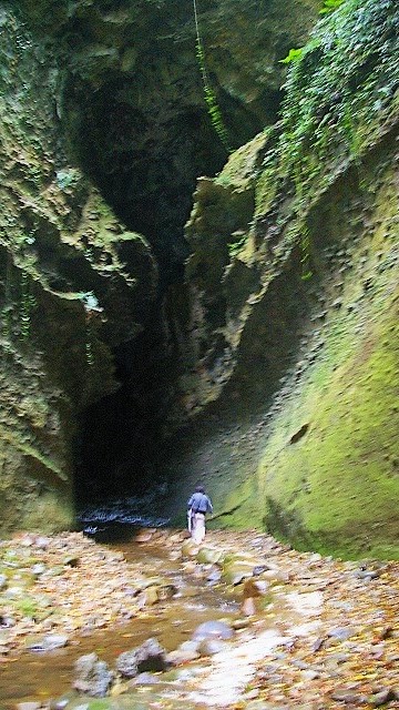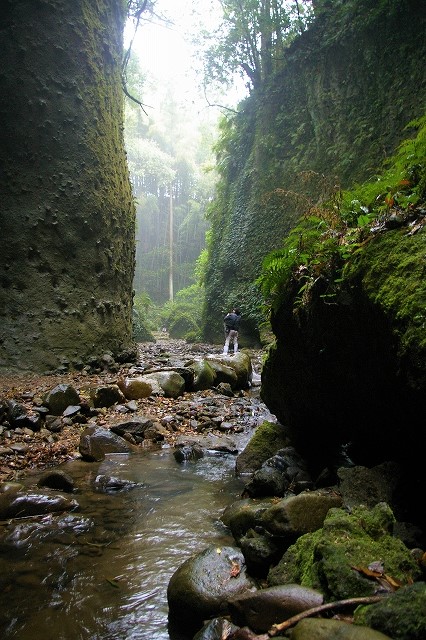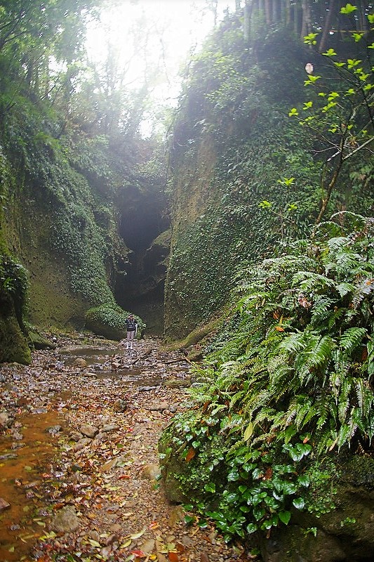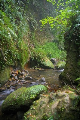 ![]() いきなり別世界! 国指定天然記念物のシダ群落と水の流れの浸食にびっくり。 |