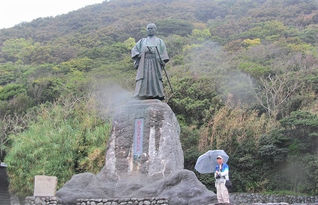 ![]() 『中岡慎太郎像』 海援隊(日本の貿易会社)の坂本龍馬とともに明治維新に向けて活動した勤王の志士。 1867年11月15日、京都河原町の近江屋で龍馬とともに刺客に襲われ、志半ばで生涯(30才)を閉じた。 |