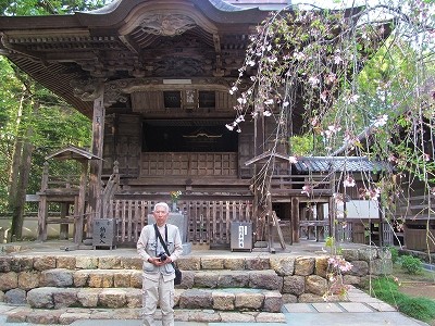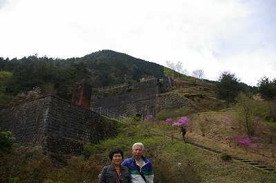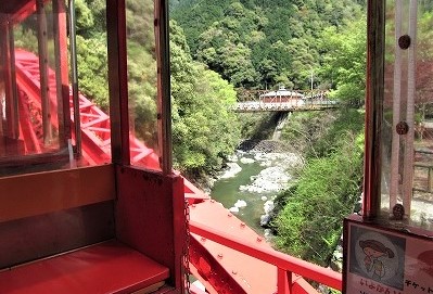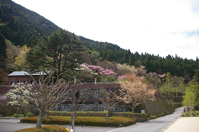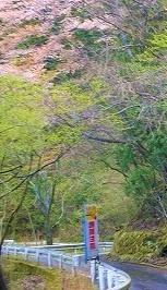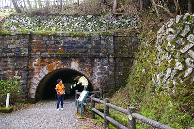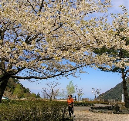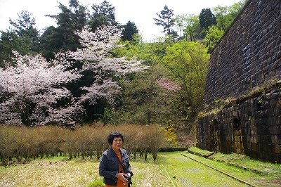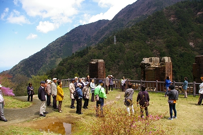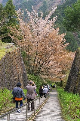 ![]() 山桜が満開! ガイド付き観光バスのグループについていき『インクライン跡』を利用した220段の階段を降りる |