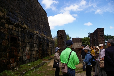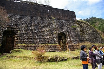 ![]() 花崗岩作りの貯蔵 庫は、運ばれてきた鉱石を一時的に貯蔵するために作られ、今も当時の姿で残っている。 |
