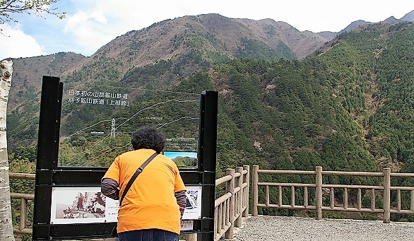 ![]() 駐車場から別子銅山の歴史を学ぶ・・・ 稜線をトロッコ列車が走っていた地図を見る |