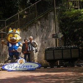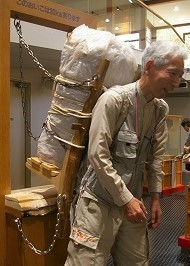 ![]() 小マンプの中は、東平にゆかりのある鉱山運搬機器展示場 東平歴史資料館で30Kgを体験 |