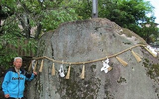 ![]() 有馬川の太閤橋から『袂たもと石』 重さ約130トン。 湯泉神社の祭神「熊野久須美命」が着物の袂からとりだし、乱暴者に投げた小石が大きくなったとか? |