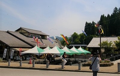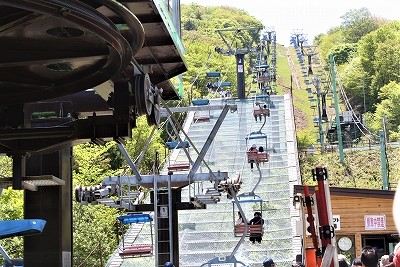 ![]() 稲武道の駅では鯉のぼりがまだ泳いでいます。 茶臼山ロープウェーにはすでに列が (往復¥800) |