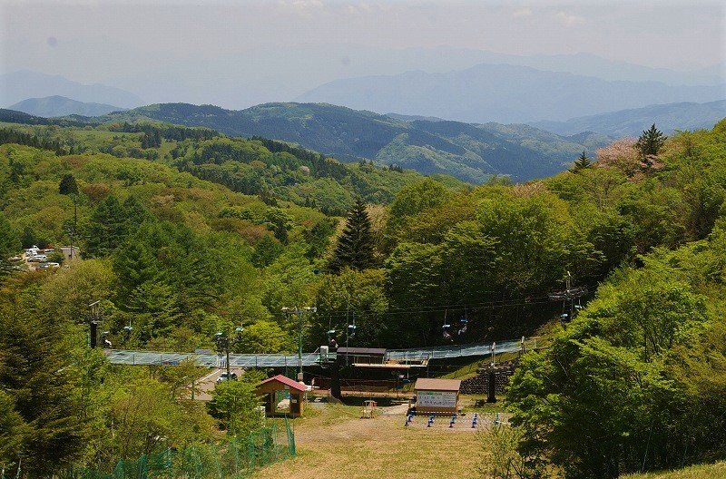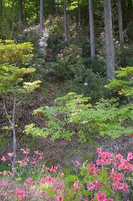 ![]() アウトドアの楽園として人気のスポット。 標高900mにある津具グリーンパークに咲くミツバツツジ |