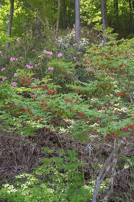 ![]() 珍しいホソバシャクナゲの群生 |