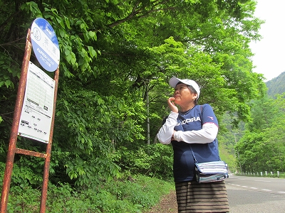 ![]() 一番奥の茶嵐Pに止めバス停へ9:33を待つ・・・バスは満席通過・・・トヨタのご夫婦とタクシーで相乗り(安上り) |