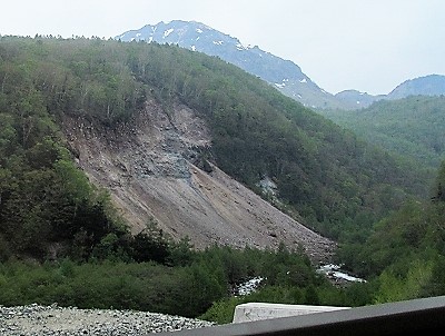 ![]() 大きながけ崩れがあったので新しいトンネルが掘られたと! 新緑の白樺林を走ると |