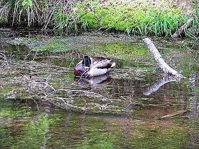 ![]() 遠目には汚く見えますが水は透き通っています。 カモかも? |