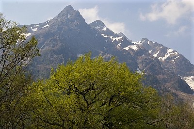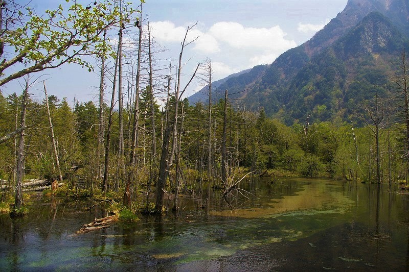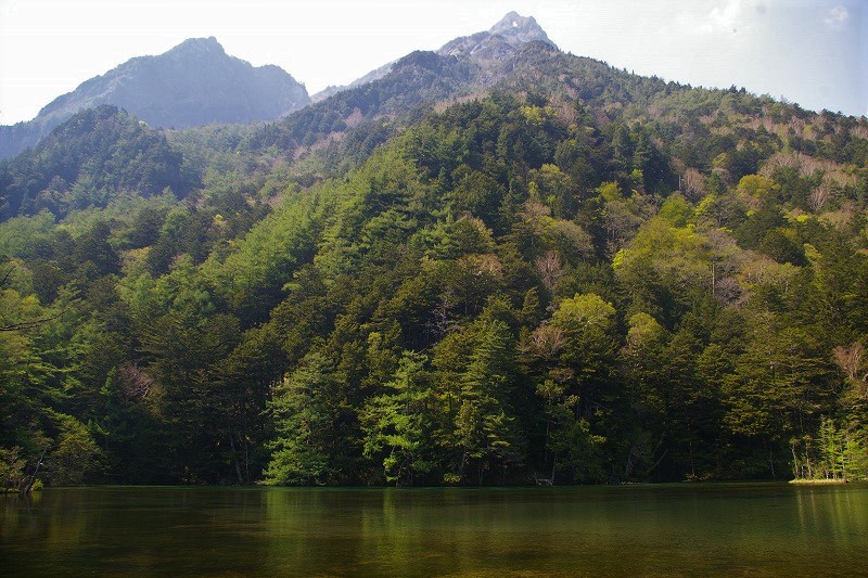![]() 『明神池』 池の間近にそびえる明神岳 |