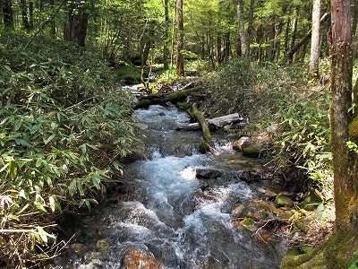 ![]() 『明神橋』 とても静かです。 さらに1時間歩けば徳沢園(結婚前に歩きました) |