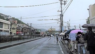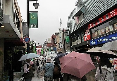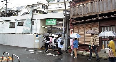 ![]() ランチの後・・・七里ヶ浜駅まで傘の列が続きます |