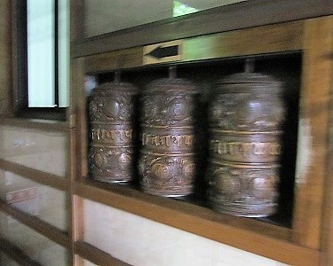 ![]() お経が書いてある筒を手で回せば、お経を読んだことになります。 |