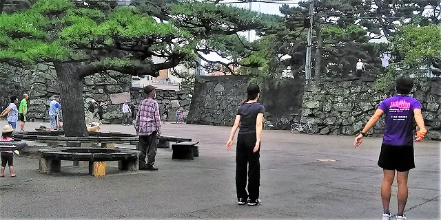 ![]() 広場ではラジオ体操が・・・指導者は石垣から! 私も参加してホテルに戻る |