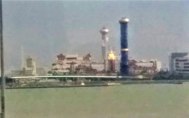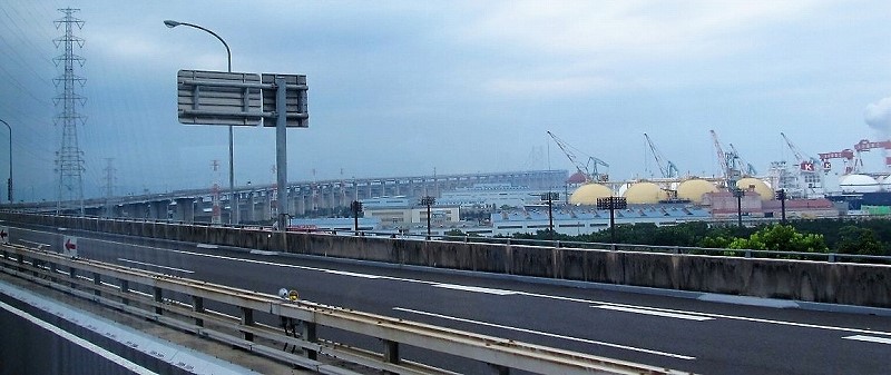 ![]() 橋の中央部をタンカーが潜り抜けてきた |