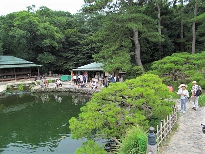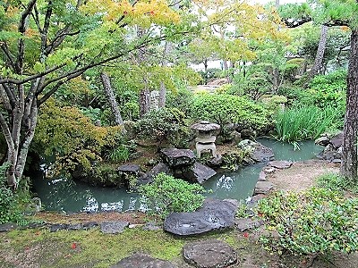 ![]() 『掬月亭きくげつてい』 園内は紫雲山を背景に六つの池と13の築山を巧みに配す |
