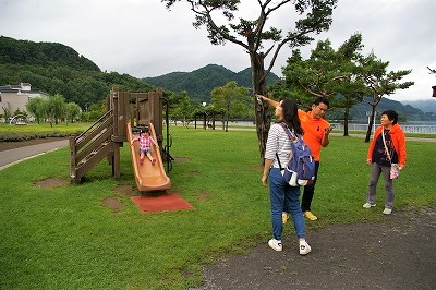 ![]() ルートを確認中! ここがサミットが開かれた洞爺湖なの〜! |