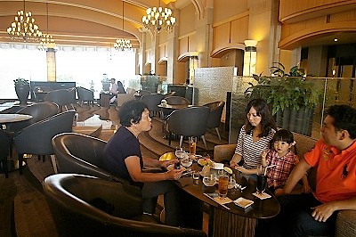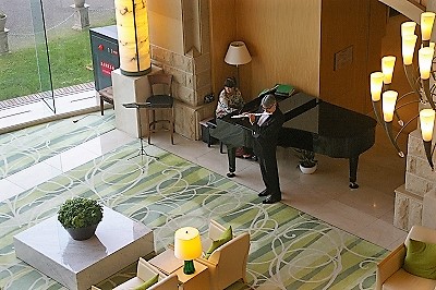 ![]() チェックインの時間でもあったので、ピアノとフルートの生演奏が始まる。 |