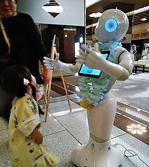 ![]() ホテルに到着 会話がかみ合わない孫とペッパー |
