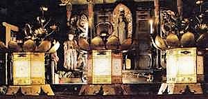 ![]() 本尊の大黒天は、「三面出世大黒天」と言われ、大黒天と毘沙門と弁財天が一体になった姿をしています。 |
