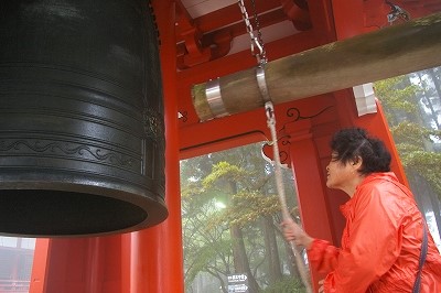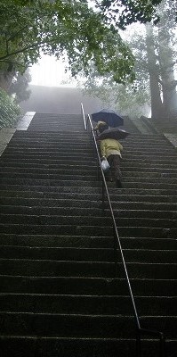![]() 傘をさして歩くのはちょっと滅入ります(靴が染みてくる)。 鐘楼は一突き¥50でした |