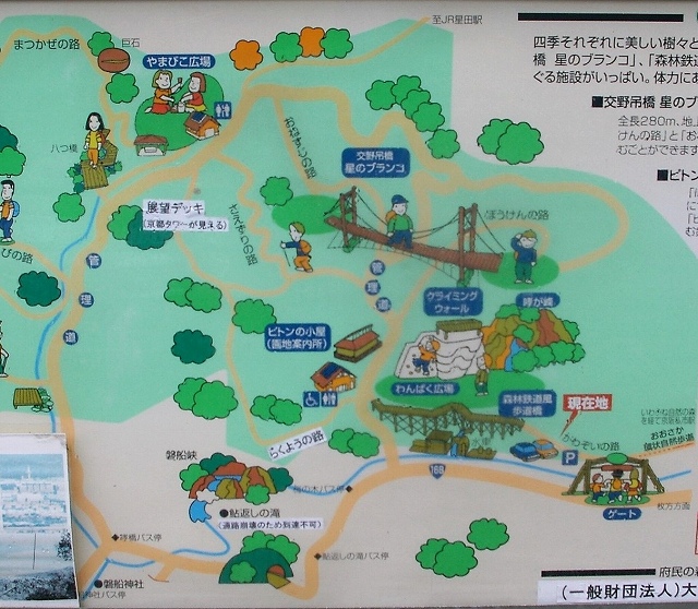 ![]() 奈良県交野市 『星野ブランコ』 全長280m高さは50mで全国6位の長いつり橋です。 ![]() |