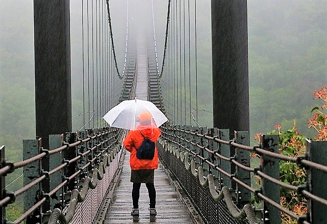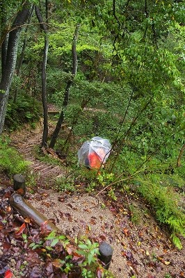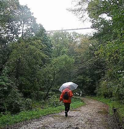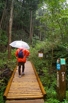 ![]() 吊り橋まで15分は近いようで意外ときつい登り坂 |