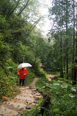 ![]() ストックも足には良いが、えらいだけでなく手が濡れて気が滅入るそうです! |
