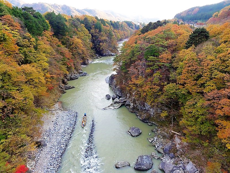 ![]() 鬼怒川下りの舟が眼下に見えます。 私達も乗りたかったな〜! |